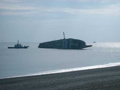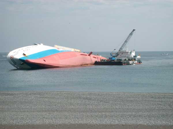2009年11月13日に熊野灘を航行中の東京発−鹿児島志布志行きフェリー ありあけ(7900t) が荒天下に荷崩れを起こし傾斜してSOS。沈没を避けるために岸に乗り上げた。