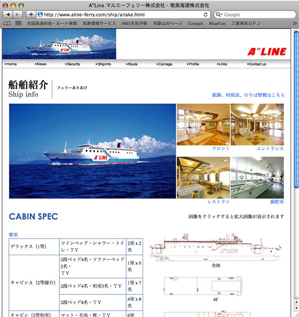マルエーフェリーのHPからは船の要目は削除されるだろうから今のうちにキャプチャー。